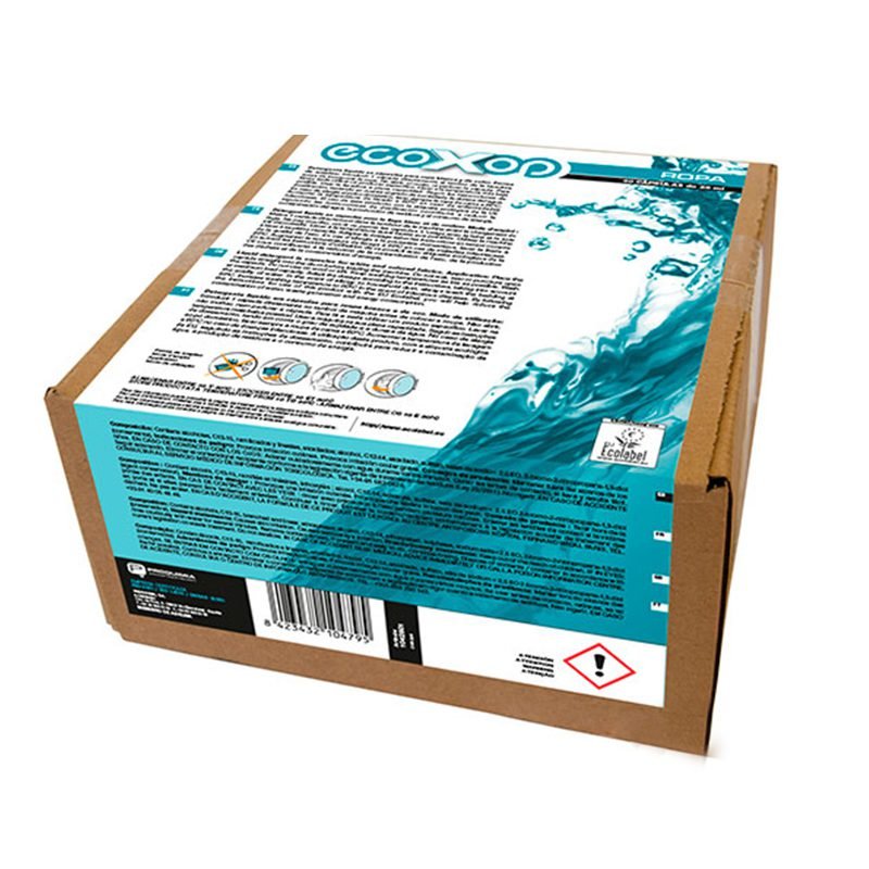 Fregasuelos multiusos en cápsulas para superficies delicadas ecoxop NATURE caja 100 unidades. Se puede aplicar para el fregado manual o con maquina fregadora.